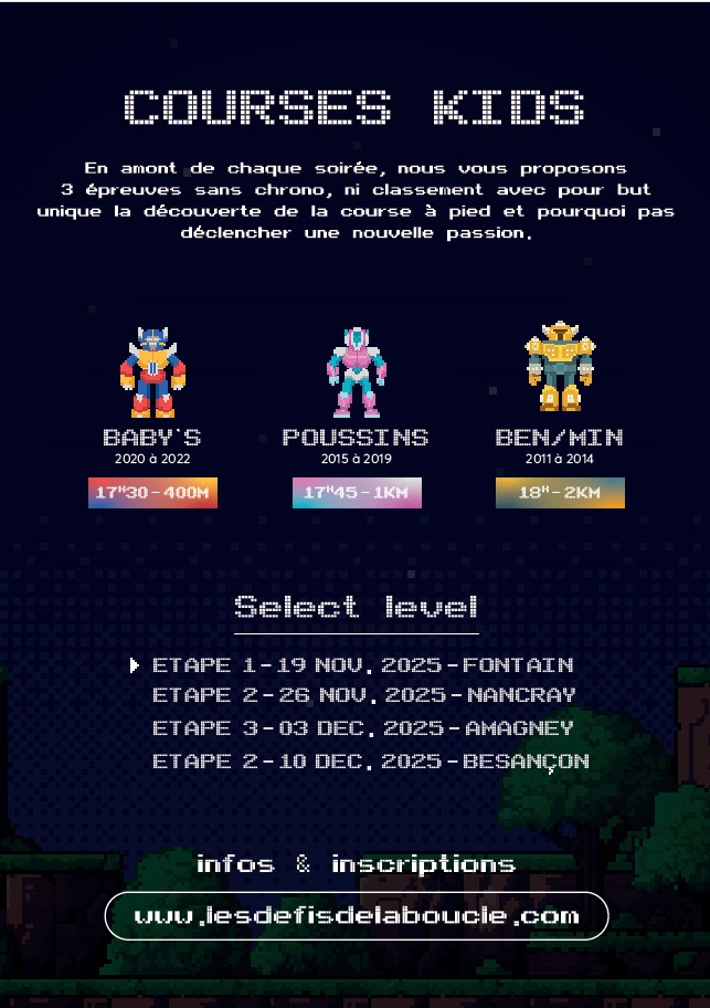 DEFIS DE LA BOUCLE : Etape à Nancray le mercredi 26 novembre avec courses Kids à partir de 17h30