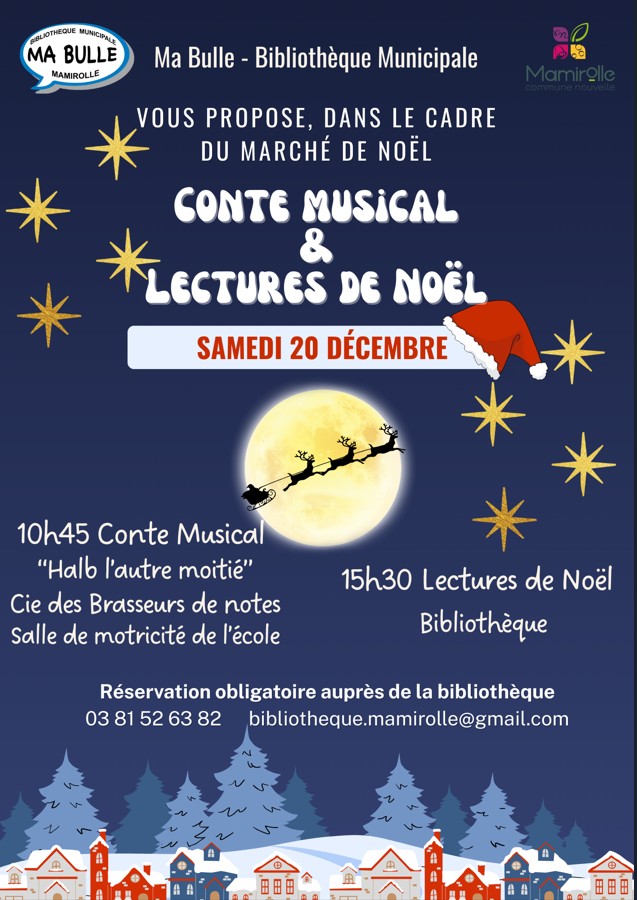 BIBLIOTEQUE DE MAMIROLLE : Conte musical et lecture de Noel le samedi 20 décembre
