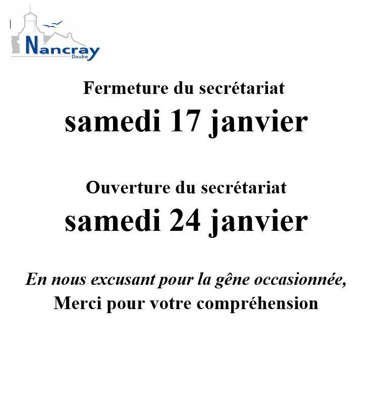MAIRIE NANCRAY : Ouverture/fermeture du secrétariat de mairie en janvier