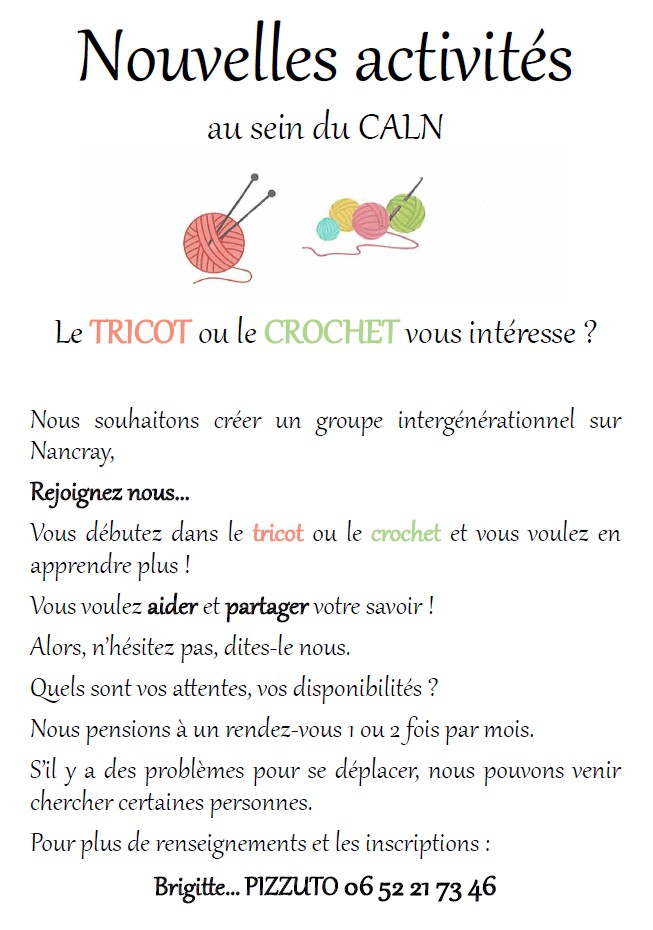 CALN : Nouvelles activités proposées - Tricot et crochet