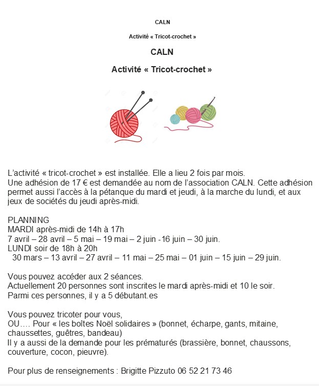 Créativité & Convivialité : L’Association CALN Ouvre un Atelier Tricot-Crochet