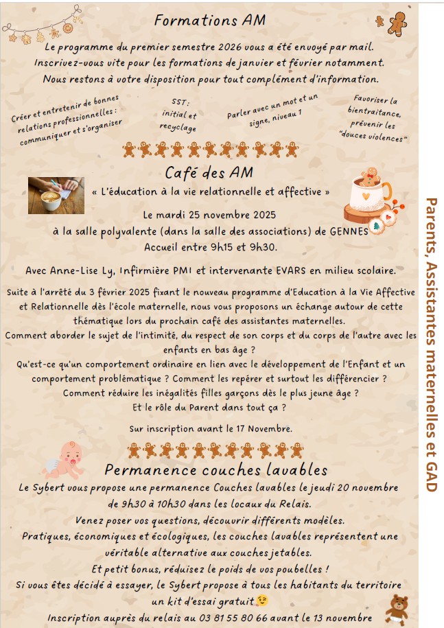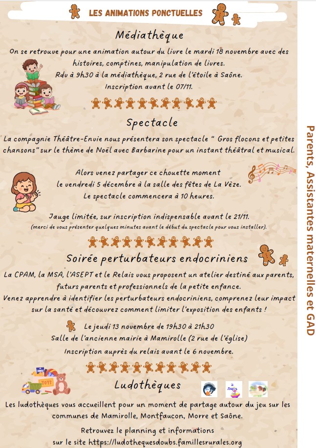 RELAIS PETITE ENFANCE DU PLATEAU : Agenda novembre/décembre 2025