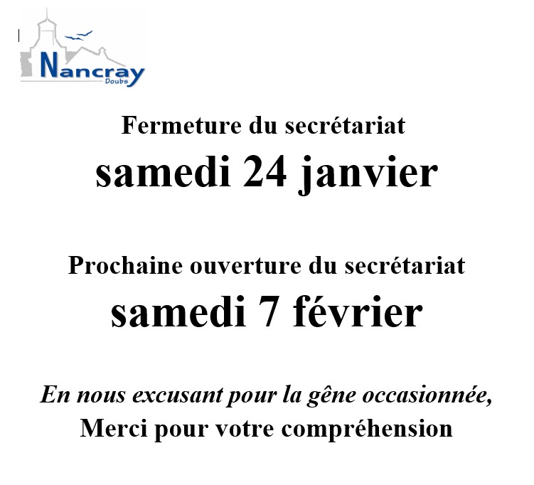 MAIRIE NANCRAY : Ouverture/fermeture du secrétariat de mairie le samedi en janvier/février